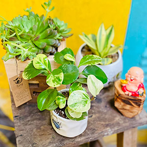 Bỏ ngang công việc hiện tại, hai vợ chồng chị bén duyên với cây cảnh và trang trí tiểu cảnh mộc decor với cái tên thật bình dị: “Vườn Nắng”